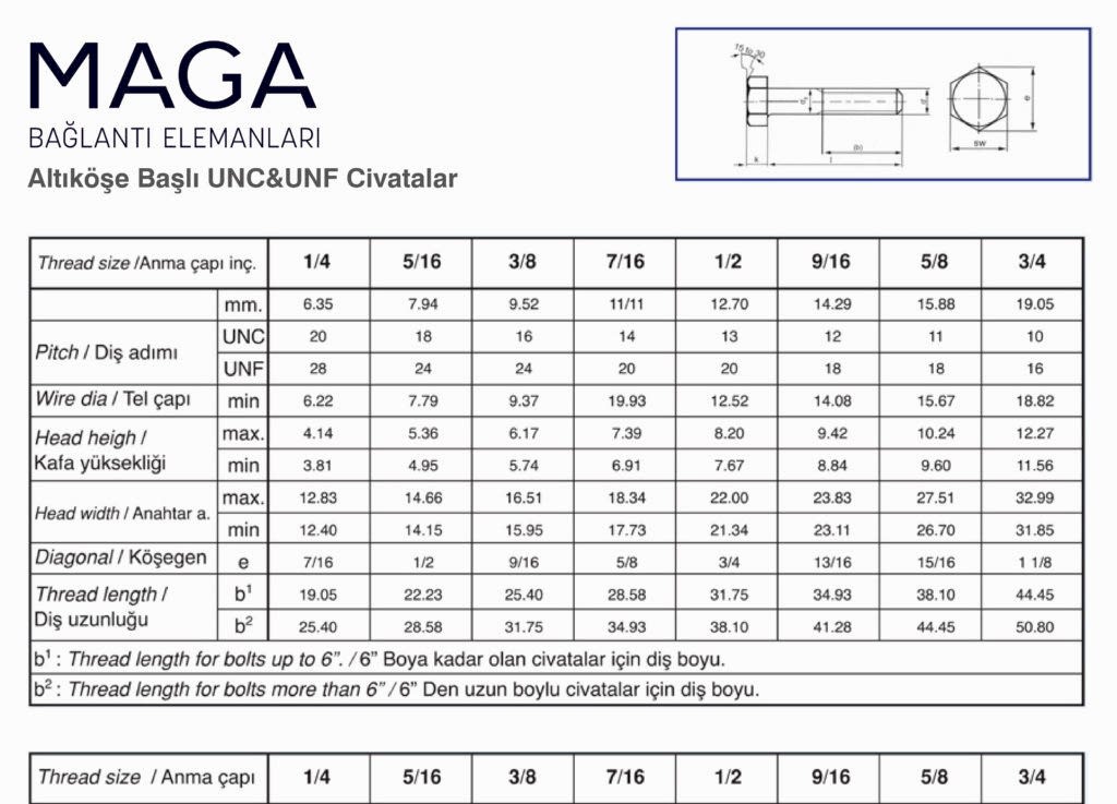 ALTI KÖŞE BAŞLI UNC&UNF