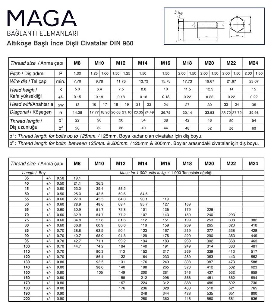 ALTI KÖŞE BAŞLI İNCE TAM DİŞLİ