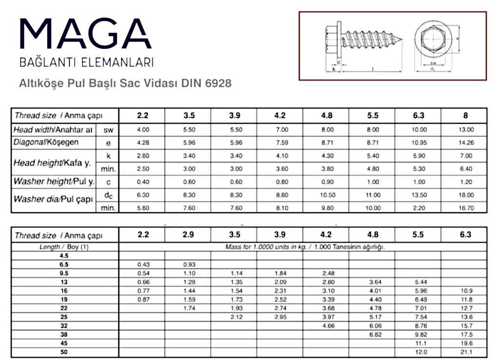 ALTI KÖŞE PUL BAŞLI SAC VİDASI