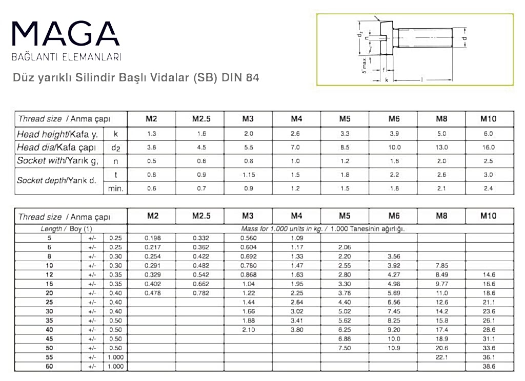 DÜZ YARIKLI SİLİNDİR BAŞLI VİDA