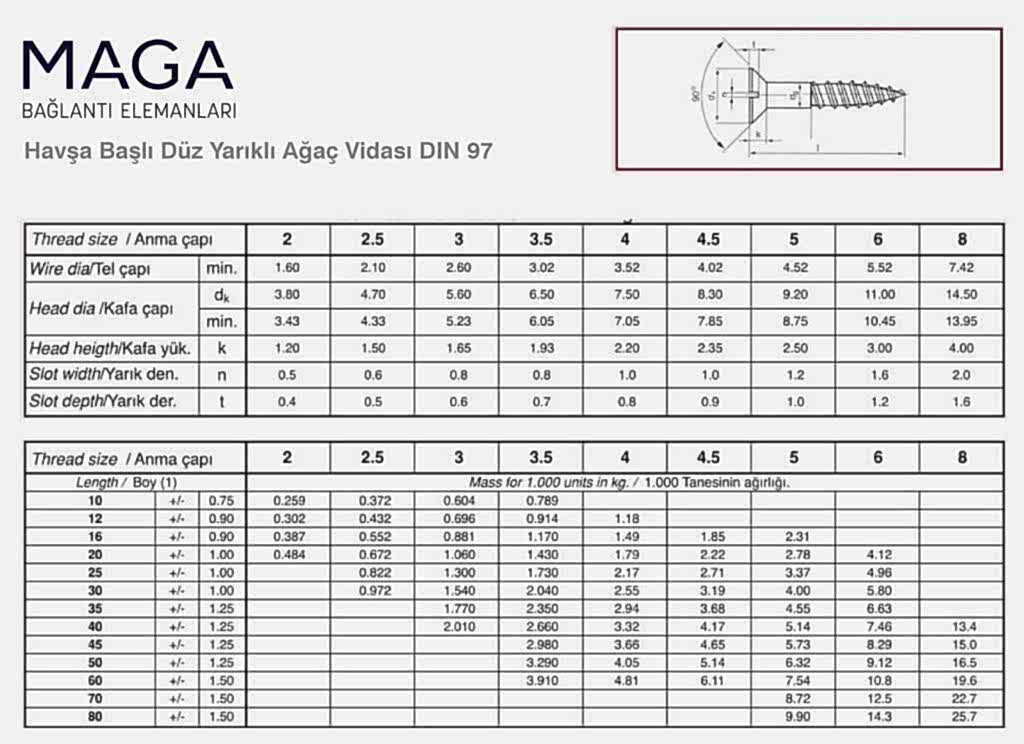 HAVŞA BAŞLI DÜZ YARIKLI AĞAÇ VİDASI