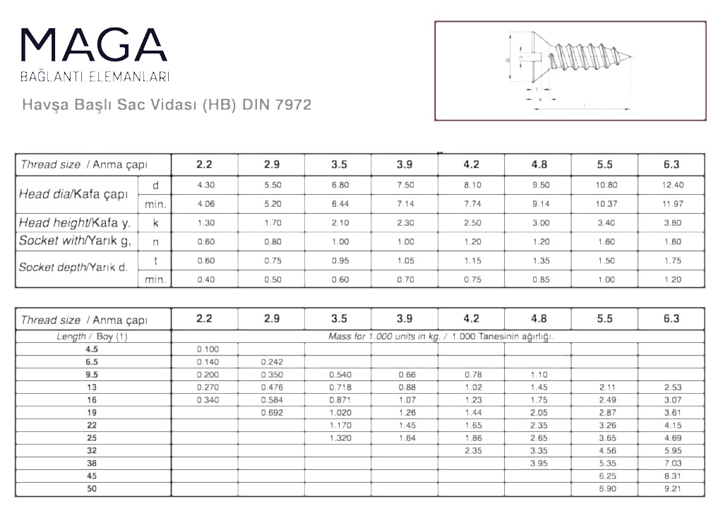 MERCİMEK BAŞLI SAC VİDASI 7973
