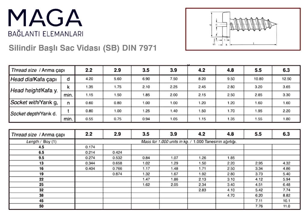 MERCİMEK BAŞLI SAC VİDASI 7973