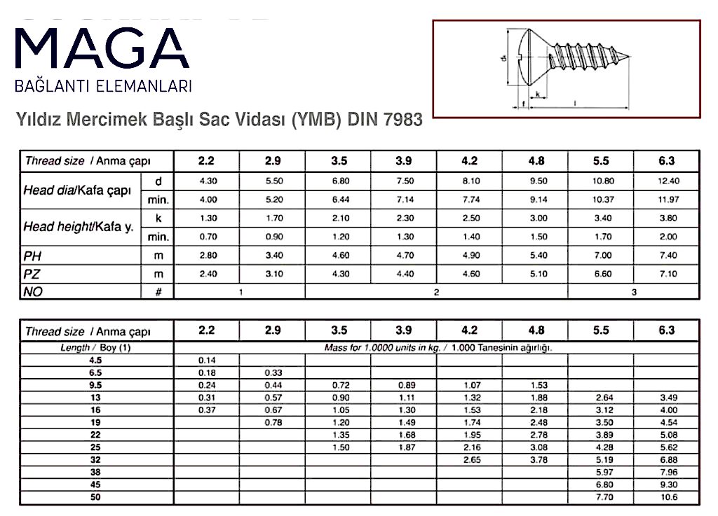 MERCİMEK BAŞLI SAC VİDASI 7973