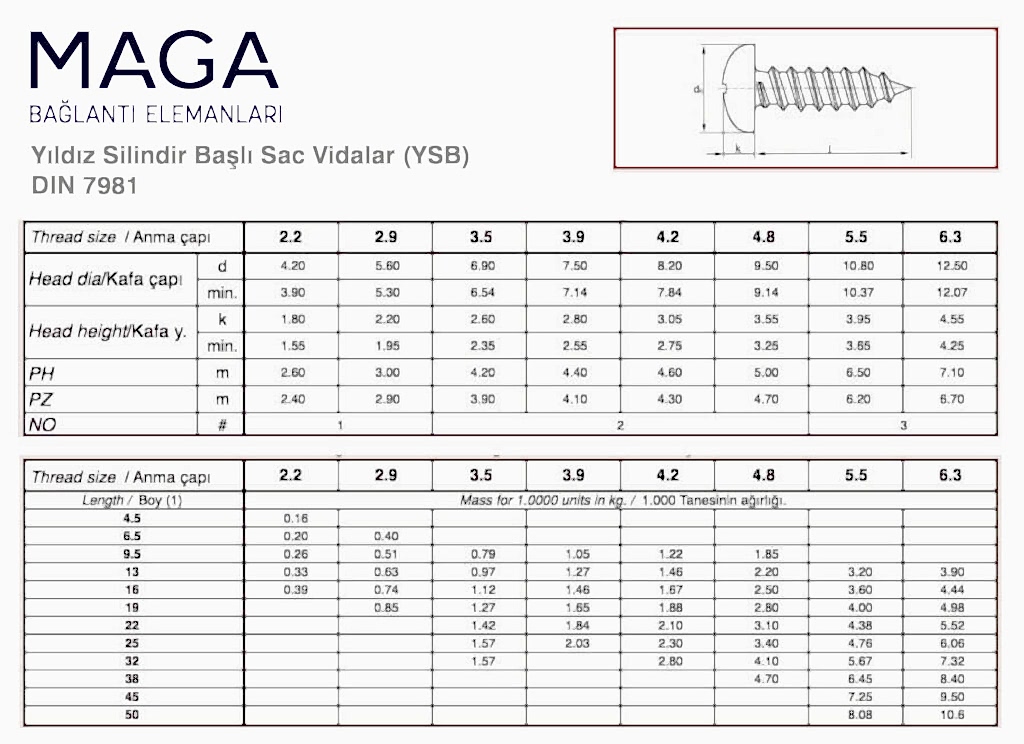 YILDIZ SİLİNDİR BAŞLI SAC VİDA 7981